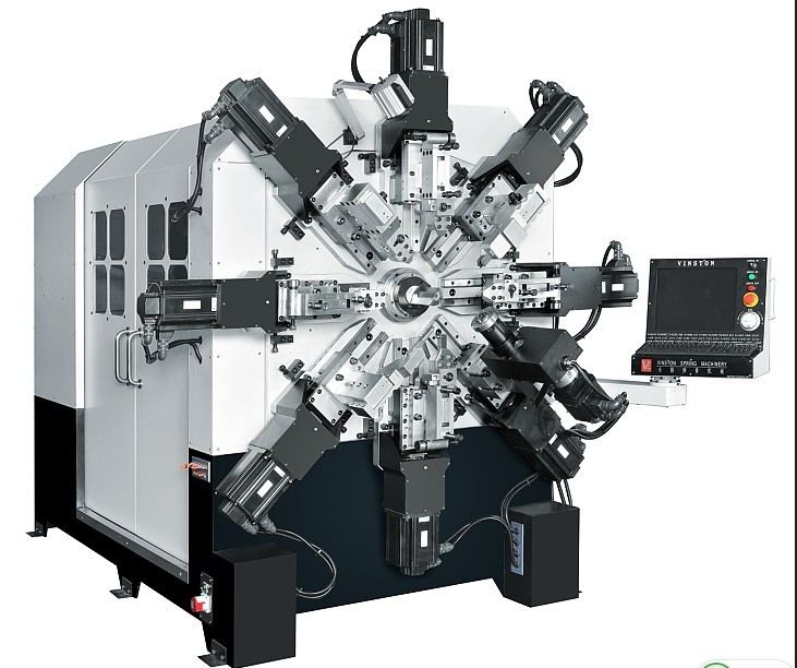 永騰無凸輪彈簧機在國內(nèi)的應(yīng)用,在近幾年間逐漸得到認可。與傳統(tǒng)帶凸輪電腦彈簧機相比,無凸輪彈簧機在設(shè)計上采用獨特的無凸輪和無搖臂技術(shù),其中刀架采用八組伺服馬機獨立完成驅(qū)動控制,調(diào)試過程中節(jié)省了排凸輪片的時間,而且更方便多角度彈簧產(chǎn)品成形,具有調(diào)試方便、加工能力強和成形速度快等特點。